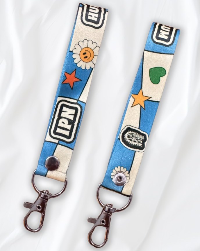 Mini pero con toda la actitud del Poli. Este lanyard mezcla good vibes con guinda y blanco: ondas, rayitas y detalles de engranes/burro blanco que te recuerdan que aquí se trabaja con técnica… y buen humor.